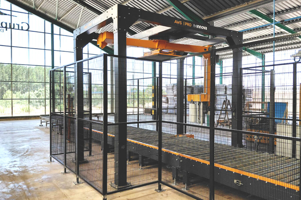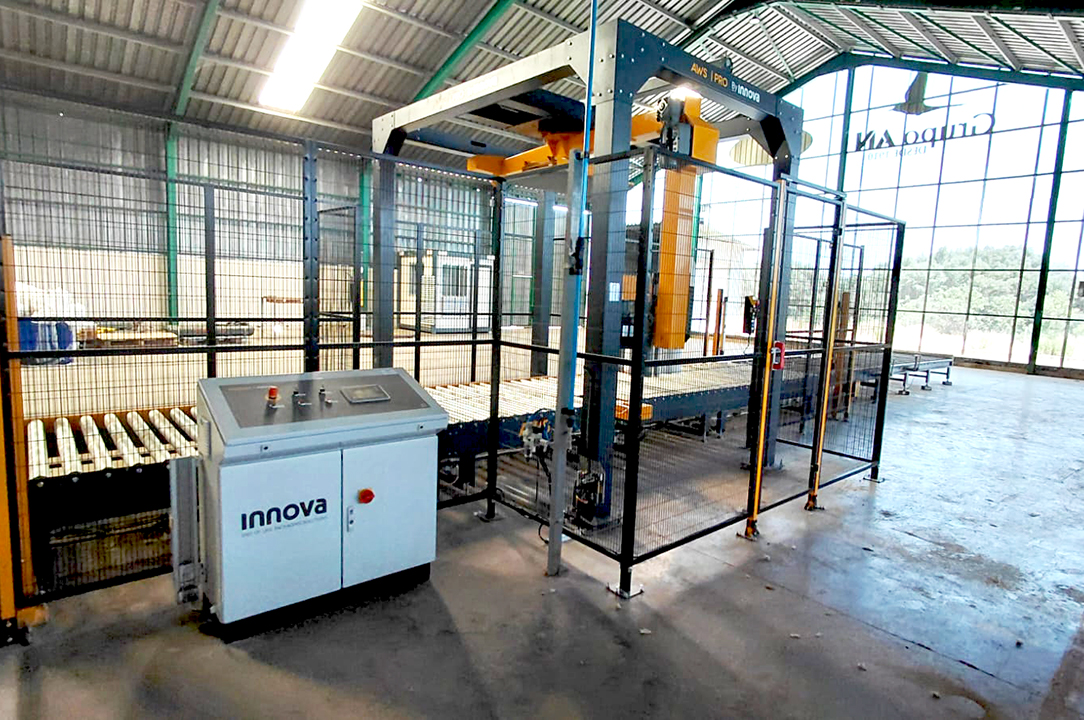 - Automatic Rotary Arm Wrapper System: Innova developed and installed one of its new wrapping systems, recognized for optimization, speed, stability, and its patented wrapping finish. The installed model was the AWS | Pro system with top press accessory.